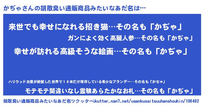 かぢゃさんの胡散臭い通販商品みたいなあだ名をツクッター!