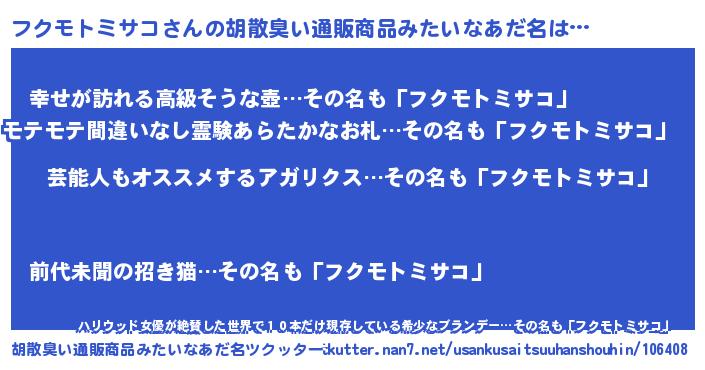 | 意味不明あだ名 | 『自称フクモトミサコ』 |