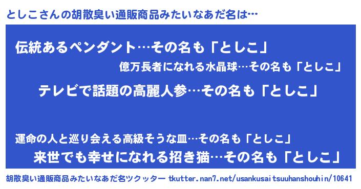 | 女子向けラノベタイトル風あだ名 | 『としこアンティーク』 |