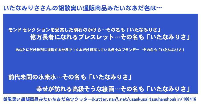 | 男性向けラノベタイトル風あだ名 | 『この素晴らしい世界にいたなみりさを!』 |