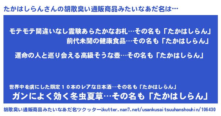 | 肩書あだ名 | 『たかはしらん大統領』 |