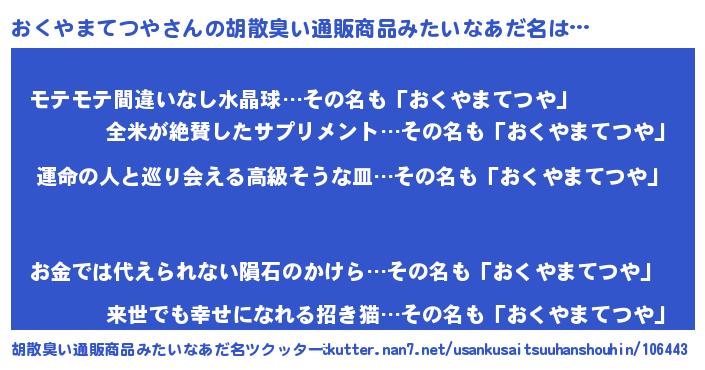 | 意味不明あだ名 | 『ヨモギ科おくやまてつや属』 |