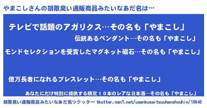 | ヘコむあだ名 | 『やまを』『やまにゅー』『なまこ酢』 |