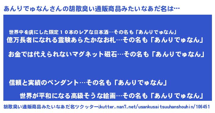 | 肩書あだ名 | 『あんりでゅなん助教授』 |