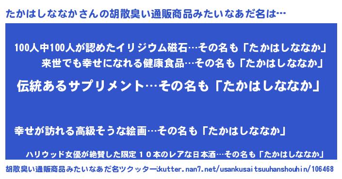 | ヘコむあだ名 | 『たか太郎』『たかはしななか(苦笑)』 |