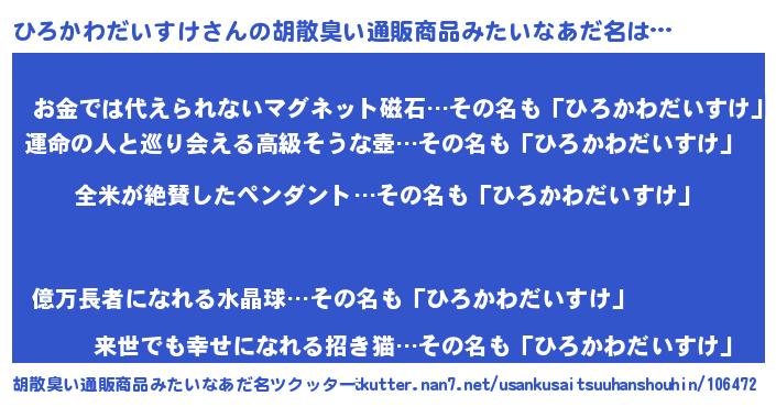 | 意味不明あだ名 | 『とにかく怪しいひろかわだいすけ』 |