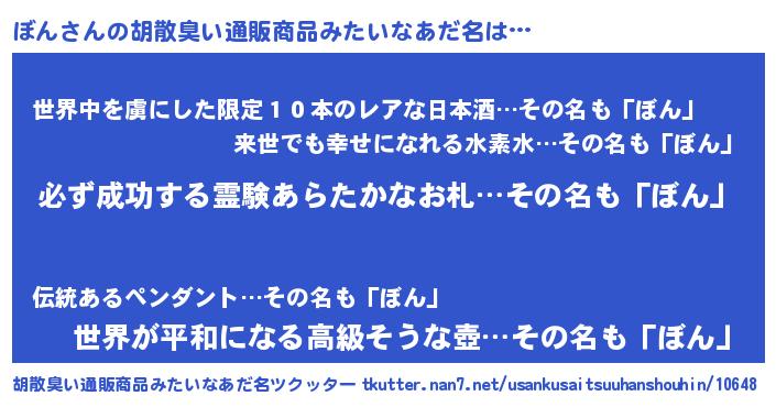 ぼんさんの胡散臭い通販商品みたいなあだ名をツクッター!