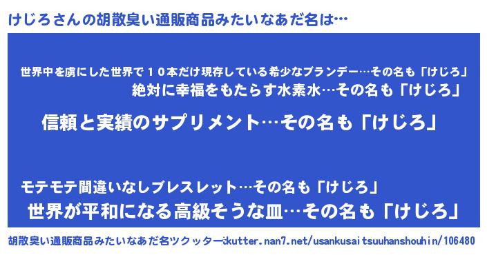 | 意味不明あだ名 | 『とにかく怪しいけじろ』 |