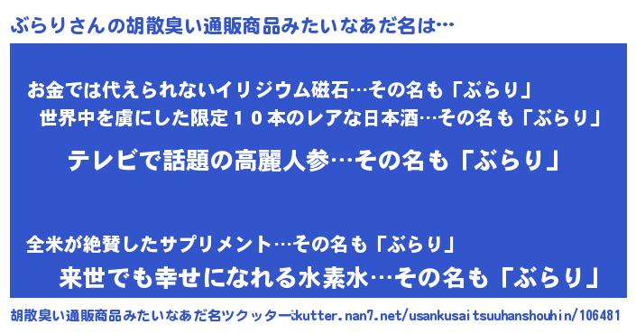 | 意味不明あだ名 | 『自称ぶらり』『眠気覚ましガムぶらり味』 |