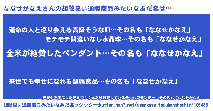 | 意味不明あだ名 | 『とにかく怪しいななせかなえ』 |