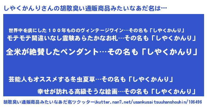 | 肩書あだ名 | 『しやくかんり大将』『しやくかんり塾長』 |