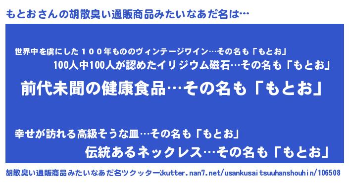 | ヘコむあだ名 | 『もとお(笑)』『もとお』『豆乳』 |
