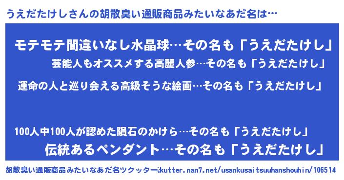 | 意味不明あだ名 | 『うえだたけしフォーエバー』 |