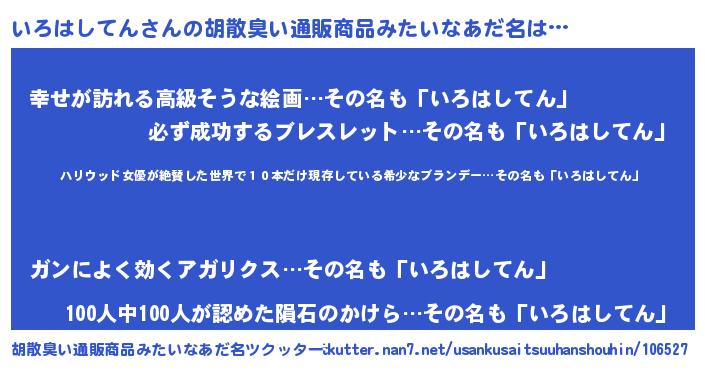 | 意味不明あだ名 | 『住所不定無職いろはしてん(74歳)』 |
