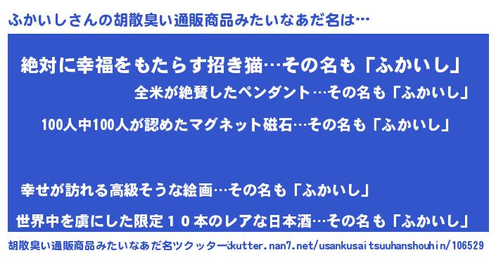 | 欧米人風あだ名 | 『ダニエルふかいし』 |