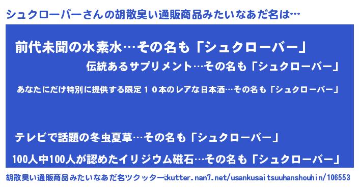 | ヒーロー風カッコイイあだ名 | 『仮面シュダー』『ネオシュクローバー』 |