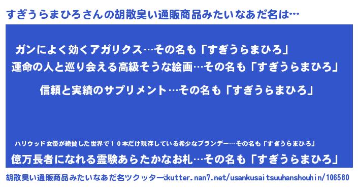 | 意味不明あだ名 | 『とにかく怪しいすぎうらまひろ』 |