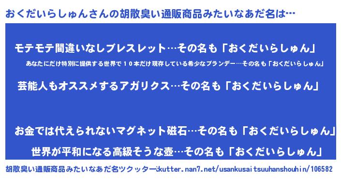 | 肩書あだ名 | 『おくだいらしゅん閣下』 |