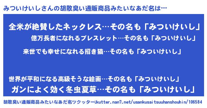| ヘコむあだ名 | 『みついけいし(笑)』『みつっ子』 |