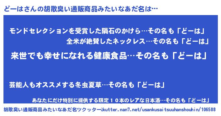 | 意味不明あだ名 | 『永久保存どーは』『ヨモギ科どーは属』 |