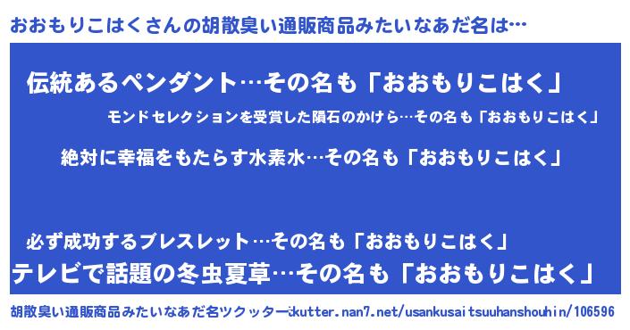 | 男性向けラノベタイトル風あだ名 | 『オオモリコハクスレイヤー』 |