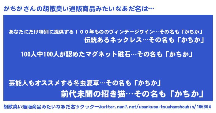 | ヘコむあだ名 | 『かちか(小並感)』『かちお』『牛乳』 |