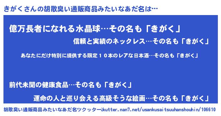 | 意味不明あだ名 | 『住所不定無職きがく(47歳)』 |