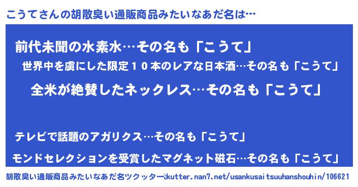| 意味不明あだ名 | 『とにかく怪しいこうて』『自称こうて』 |