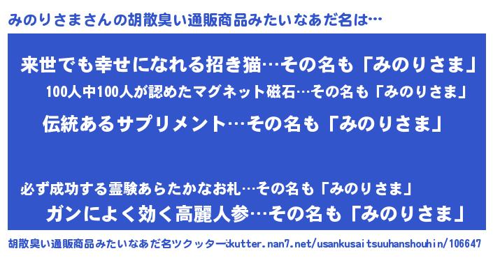 | 意味不明あだ名 | 『とにかく怪しいみのりさま』 |