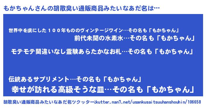 | 欧米人風あだ名 | 『マイケルもかちゃん』 |
