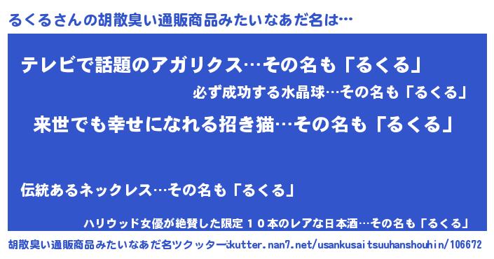 | ヘコむあだ名 | 『るくる(小並感)』『るくふぇ~』 |