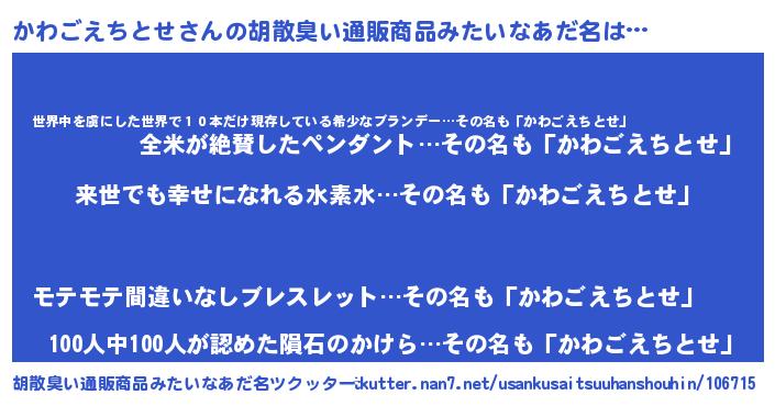 | 意味不明あだ名 | 『永久保存かわごえちとせ』 |