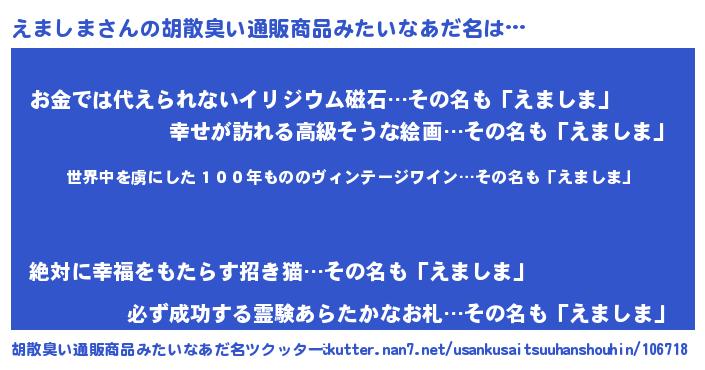| 男性向けラノベタイトル風あだ名 | 『この素晴らしい世界にえましまを!』 |