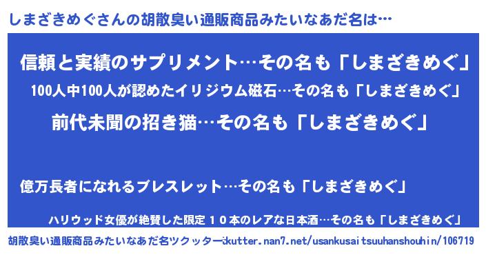 | 意味不明あだ名 | 『永久保存しまざきめぐ』 |