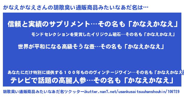 かなえかなえさんの胡散臭い通販商品みたいなあだ名をツクッター!