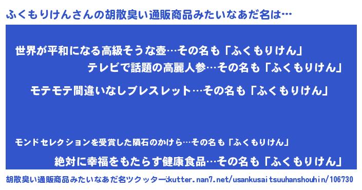 | 男性向けラノベタイトル風あだ名 | 『ふくもりけんの憂鬱』 |