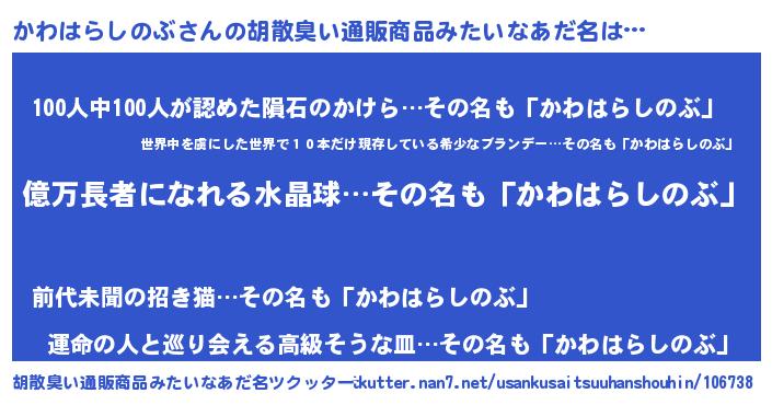 | 意味不明あだ名 | 『ペロリンかわはらしのぶ』 |