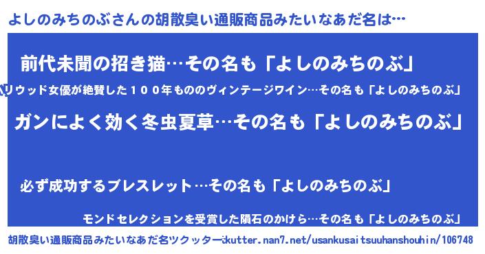 | 肩書あだ名 | 『よしのみちのぶ総統』 |