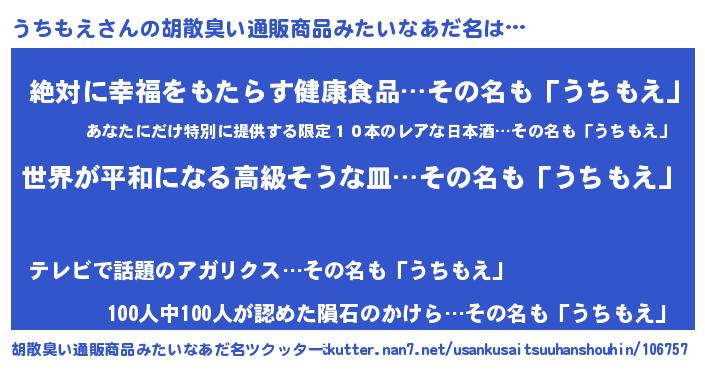 | 意味不明あだ名 | 『うちもえフォーエバー』『自称うちもえ』 |