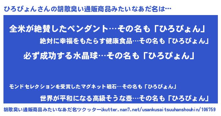 | ヘコむあだ名 | 『ひろにゅー』『ひろぷりん』 |
