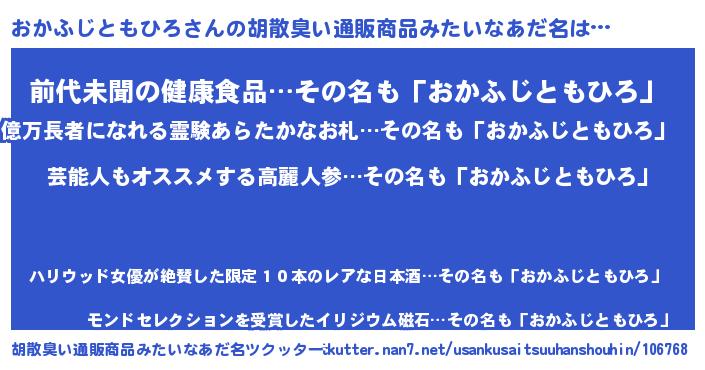 | ヘコむあだ名 | 『おかふじともひろ(笑)』『おかにゅー』 |