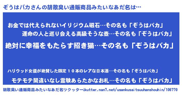 | ヘコむあだ名 | 『ぞうはバカ(小並感)』『ぞうにゅー』 |