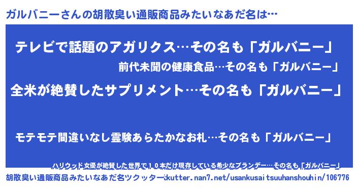 | 意味不明あだ名 | 『とにかく怪しいガルバニー』 |