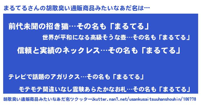 | 欧米人風あだ名 | 『ウサインまるてる』『マイケルまるてる』 |