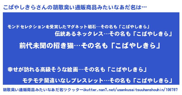 | 意味不明あだ名 | 『永久保存こばやしきら』 |