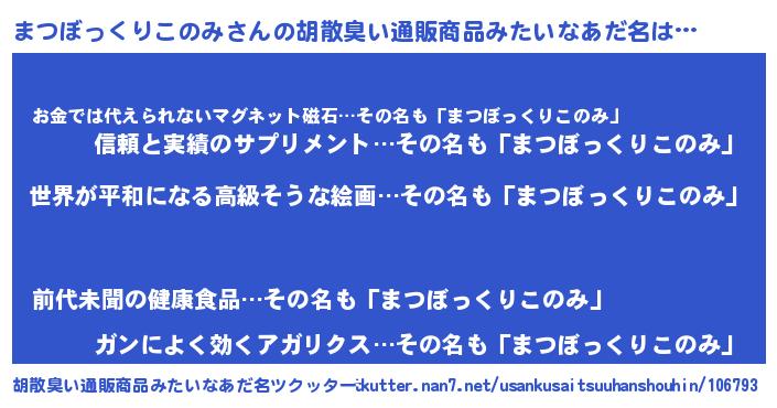 | 男性向けラノベタイトル風あだ名 | 『やはりまつぼっくりこのみの青春ラブコメはまちがっている 』 |