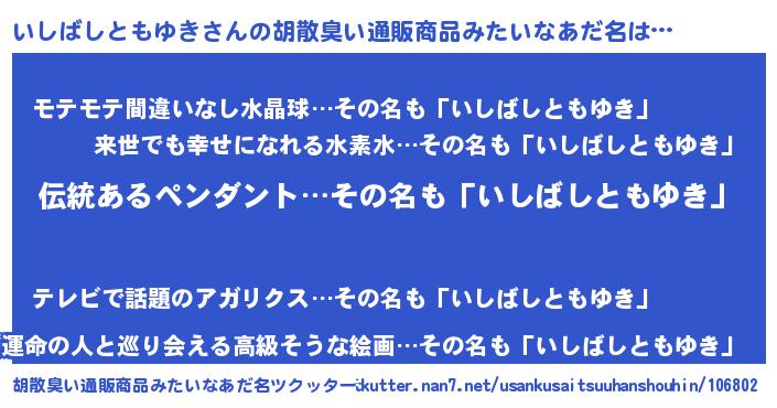 | 肩書あだ名 | 『いしばしともゆき中将』 |