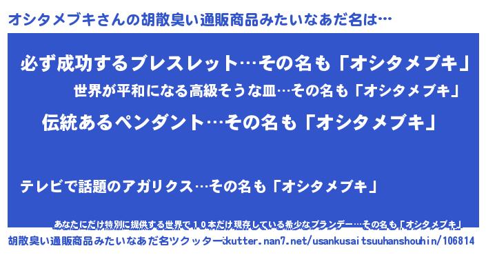 | 欧米人風あだ名 | 『オシタメブキ・ステッグマイヤー』 |