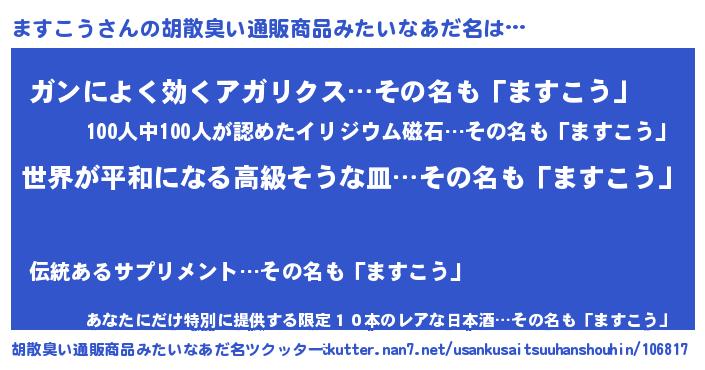 | ヘコむあだ名 | 『なまこ酢』『ますっぺ』 |