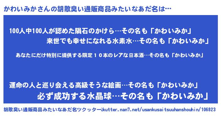 | 意味不明あだ名 | 『住所不定無職かわいみか(47歳)』 |
